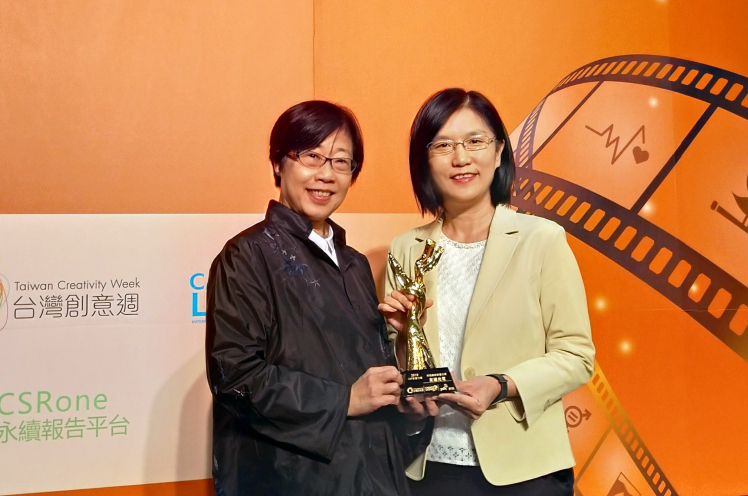 友達微美館紀錄片榮獲資誠「第三屆 CSR 影響力獎」,由友達光電永續(xù)長古秀華 (右) 代表領獎